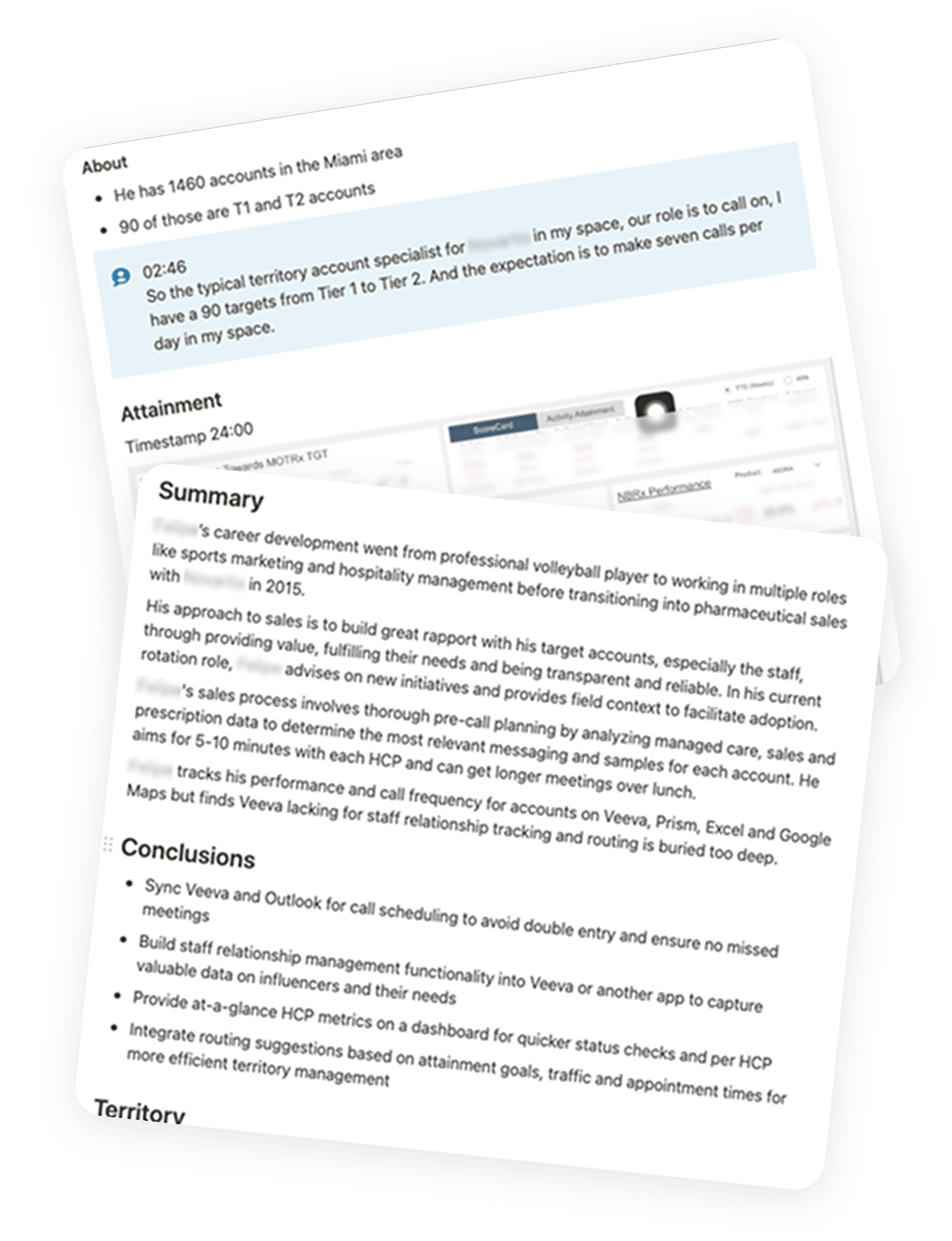 At Tact, I performed well over 40 interviews with about 90% of those to be with the sales reps themselves. The remaining 10% is divided between managers and ops primarily.